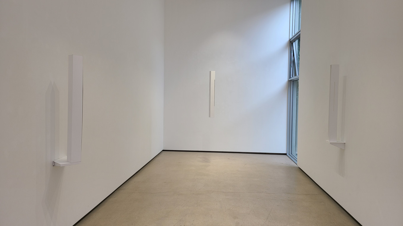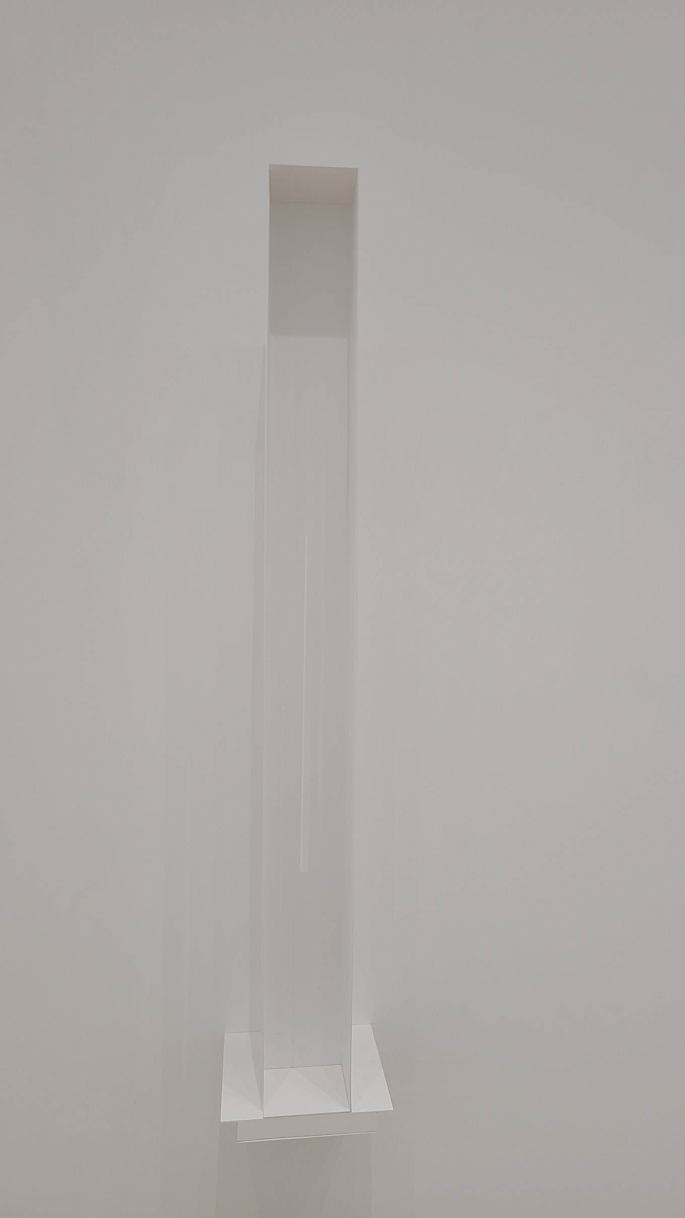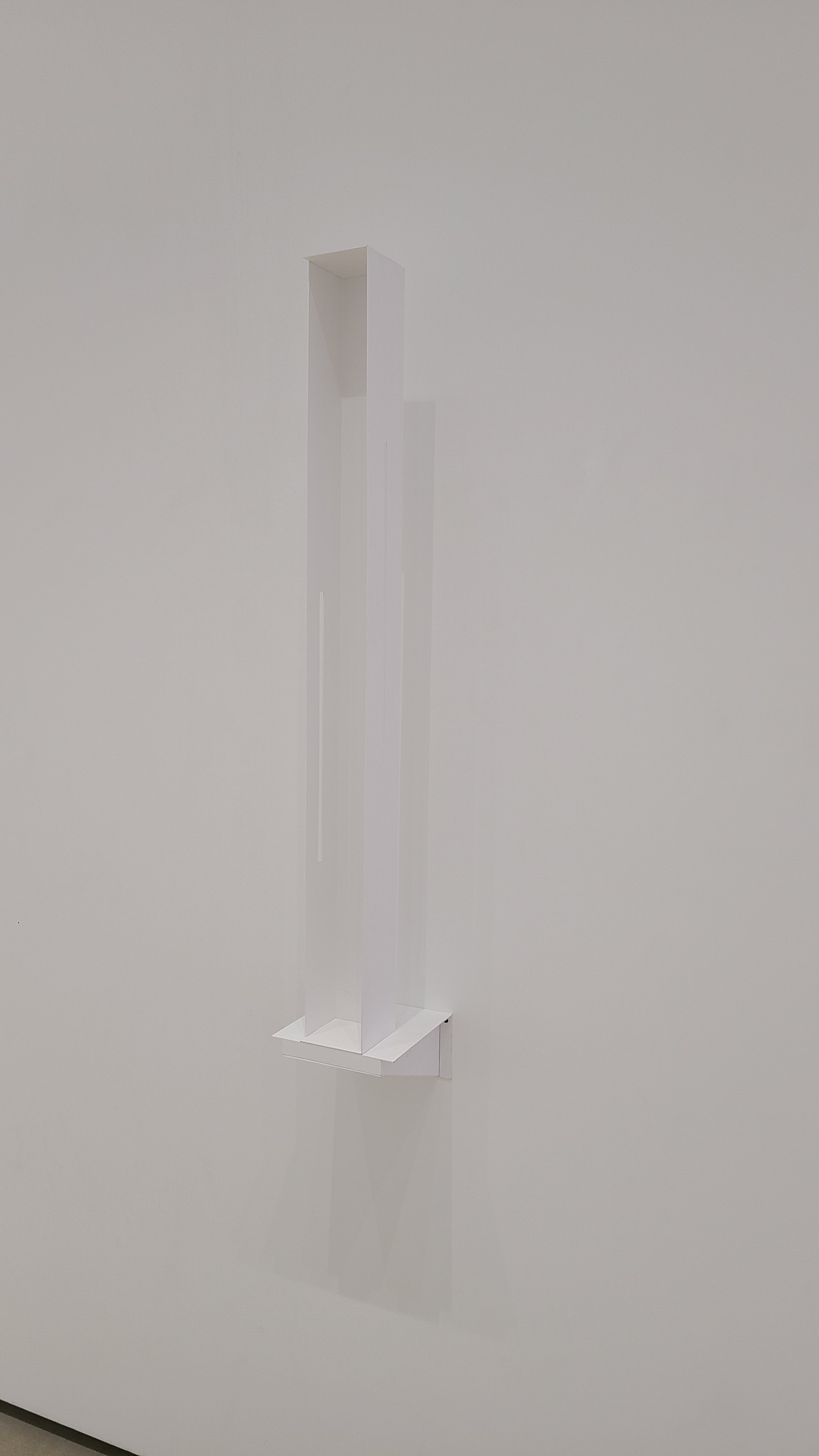 작가의 말에 따르면, <공간>은 ‘건축, 조형, 디자인 이 모든 것으로 보이고 만져지는 순수 공간’의 출현이자 공간 자체의 유희이다. 이것을 작가는 ‘아름다운 공간’이라고 부르고 있다. 건축의 공간 ‘속에서’ 새로운 형태로서의 틈을 만들어 미적인 공간을 제시하는 것인데, 미적인 공간이 새어 나오는 곳은 기능의 망(網)에서는 주목받지 못하는 장소, 모서리나 기둥, 벽면, 광장(건축의 바깥) 등이다. <공간>은 안과 밖으로 나뉘면서도 하나가 되고, 그 하나는 건축의 공간으로 환원되지 않는 ‘새로운 공간’이다. 기능을 뒷받침하는 장소가 ‘아름다운 공간’으로 변용(變容)되는 이 작용이 바로 신상욱 작가가 추구하는 작업인 것이다.