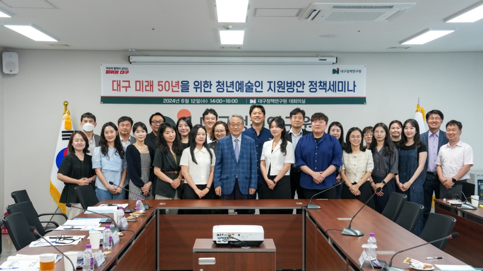 ○ 대구정책연구원(원장 박양호)은 6월 12일(수) 오후 2시에 ‘대구 미래 50년을 위한 청년예술인 지원방안’을 주제로 대구정책연구원 DPI 정책세미나를 개최했다.