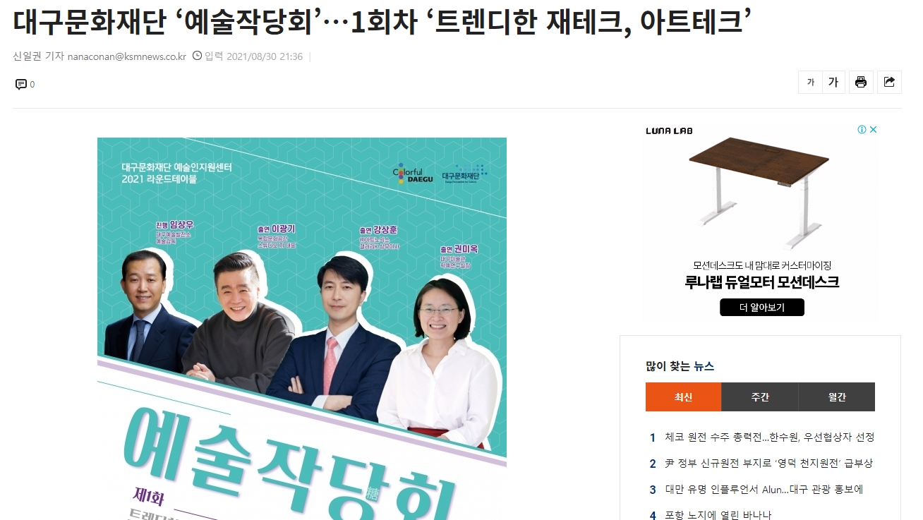 - [보도자료]대구문화재단 ‘예술작당회’…1회차 ‘트렌디한 재테크, 아트테크’