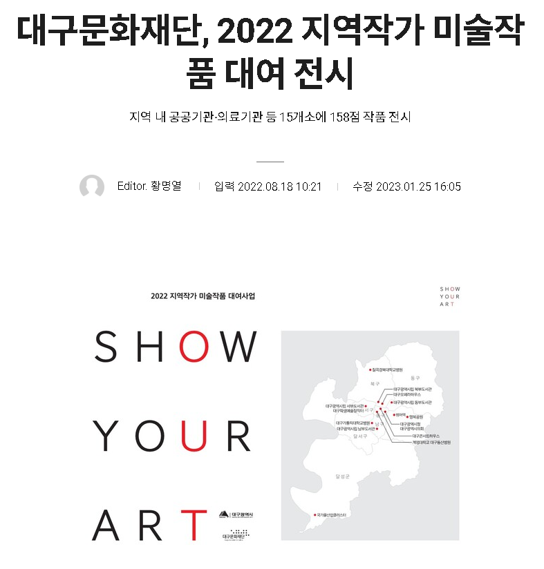 - [보도자료]대구문화재단,2022 지역작가 미술작품 대여 전시
