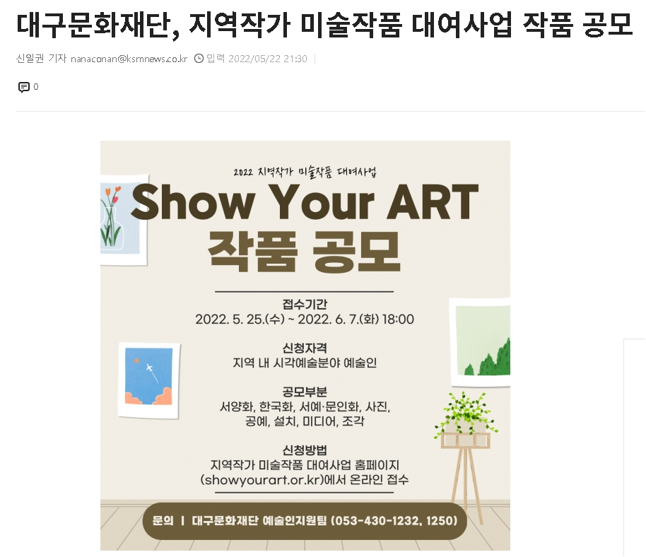 - [보도자료]대구문화재단, 지역작가 미술작품 대여사업 작품 공모