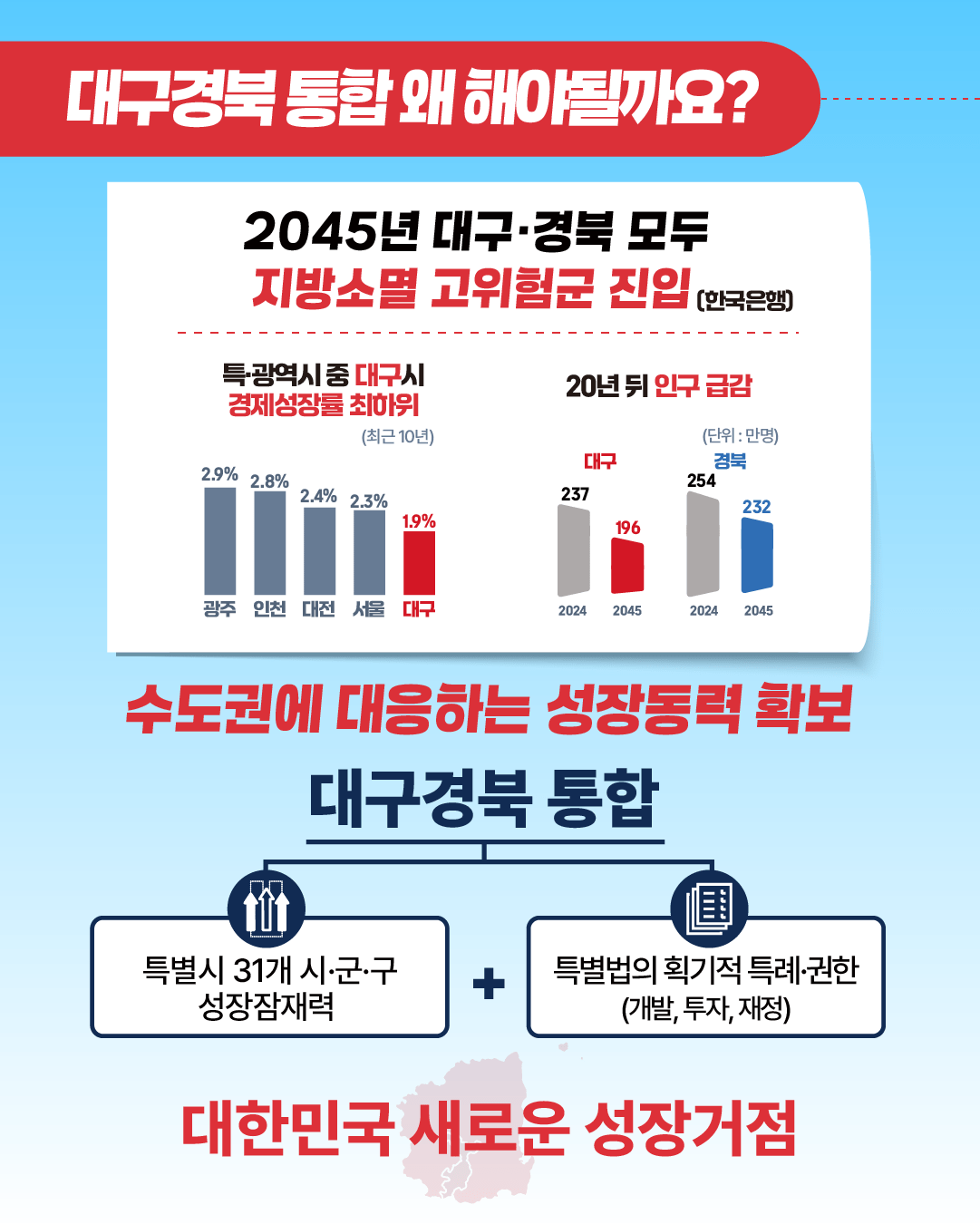 대구경북이 통합하면 서울과 함께 양대 특별시가 됩니다!