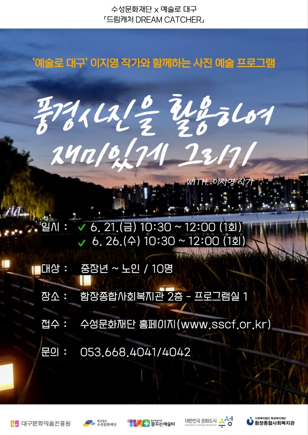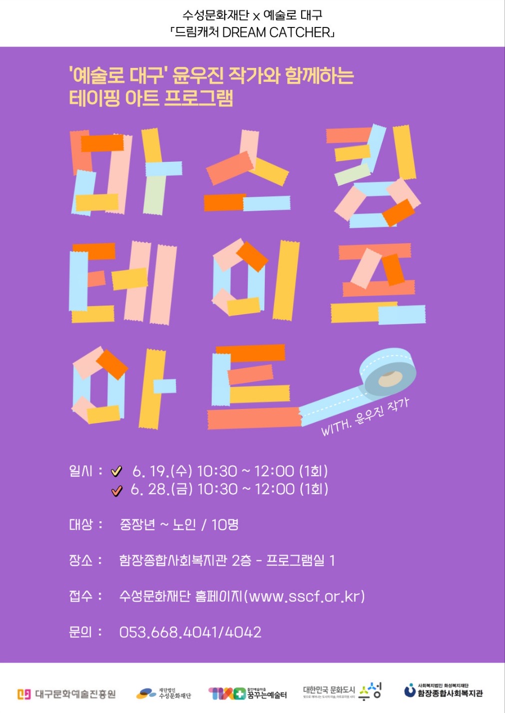 대구문화예술진흥원에서 운영하는 '예술인파견지원사업-예술로 대구'의 선정기관 (재)수성문화재단과 예술인들이 준비한 시니어 무료 문화예술체험교육 프로그램 신청 안내드립니다.
