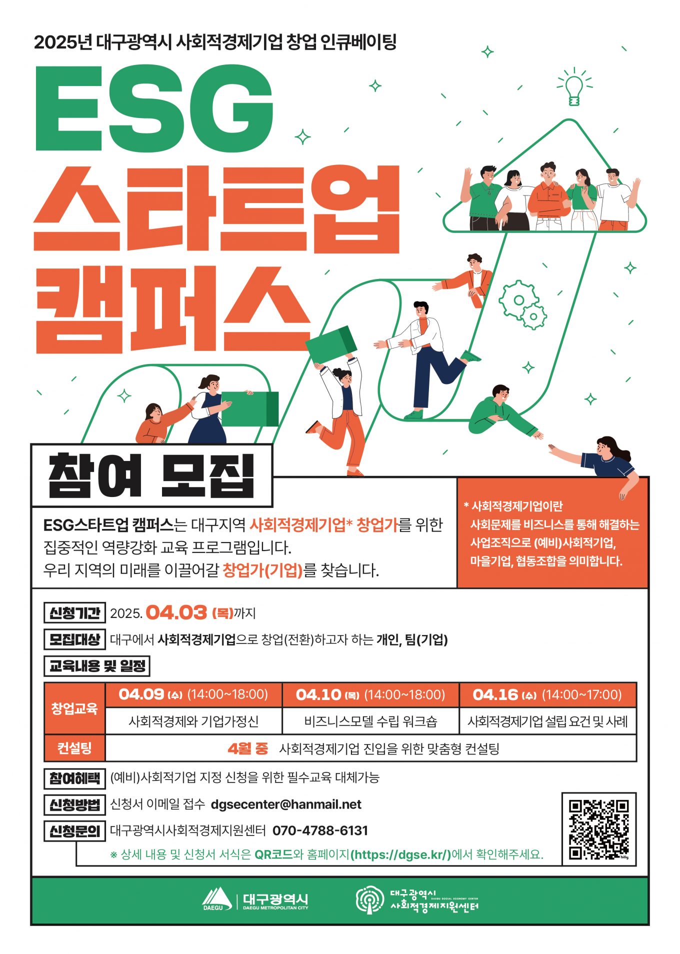 [종료] 「2025 대구시 사회적경제 창업 인큐베이팅 사업 : ESG 스타트업 캠퍼스」 (예비)창업팀 모집 공고
