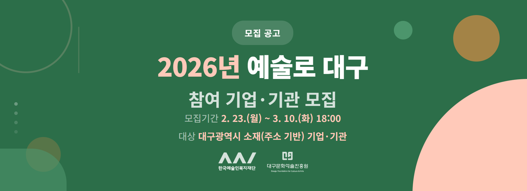 <2026년 예술로 대구> 참여 기업·기관 모집공고