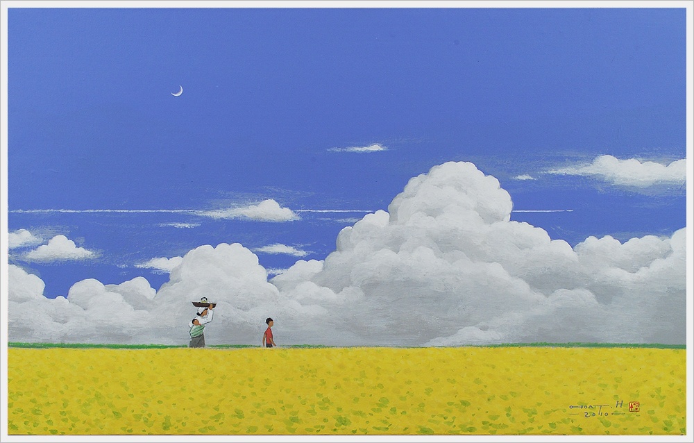 사실적,구상적,비구상적표현과 기억이 아름다울만큼 목가적이며 은유적인 이미지를 내포한 구상 작업이다.경험이나 체험 무의식적 구조속에 내재 해 있는 미적 심성을 유년의 기억들에서 출발하여 성장기를 그친