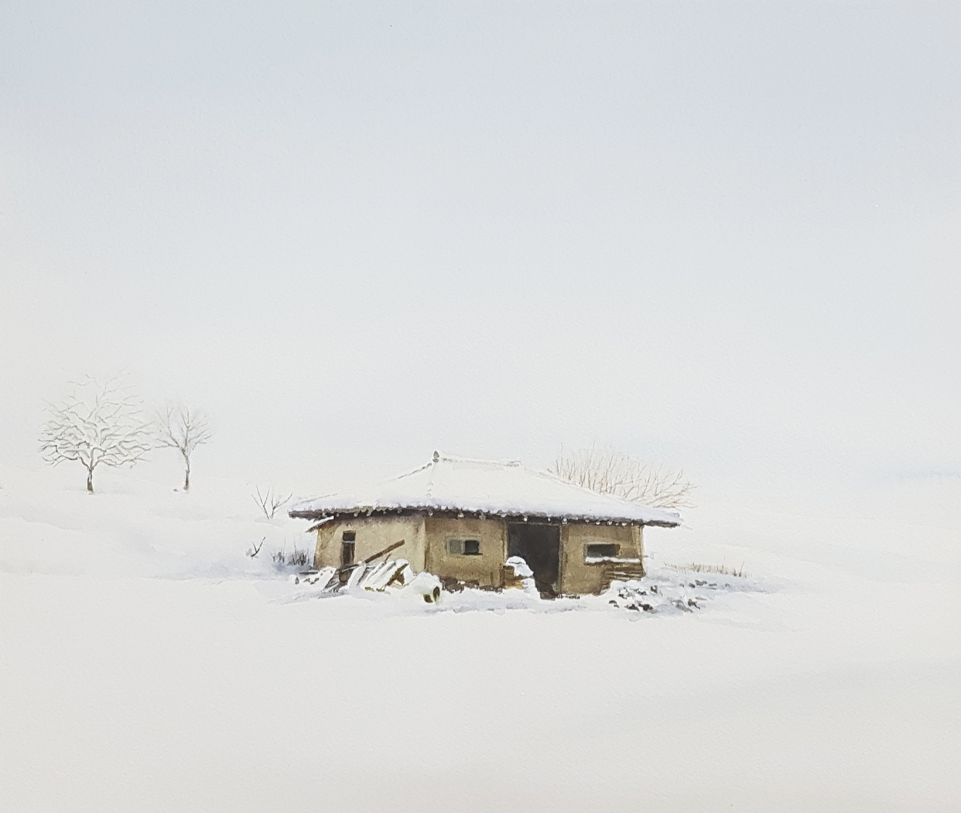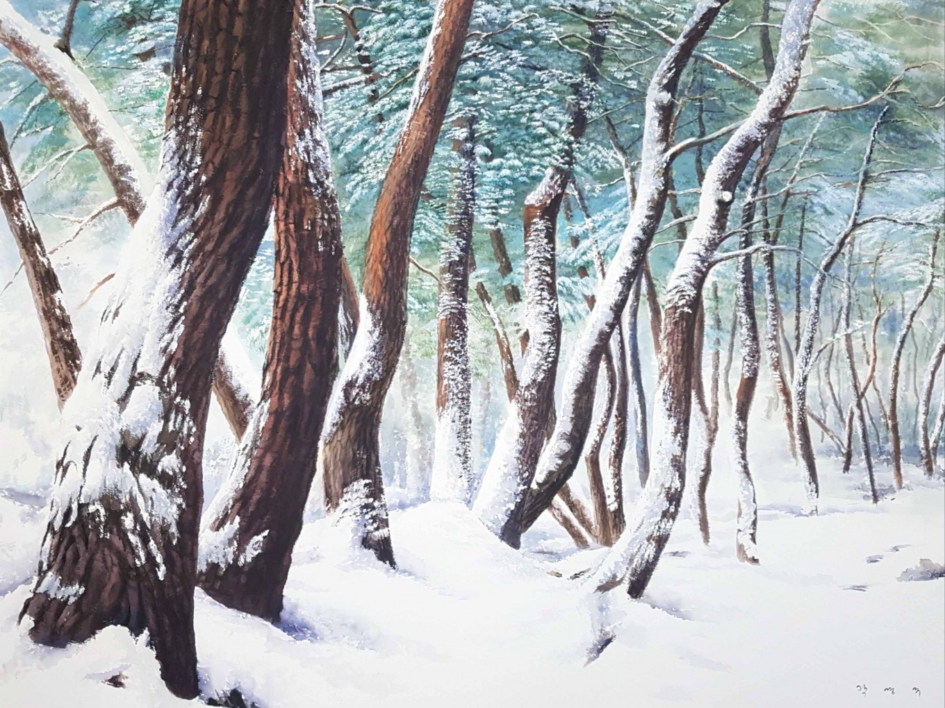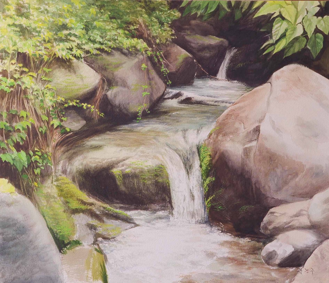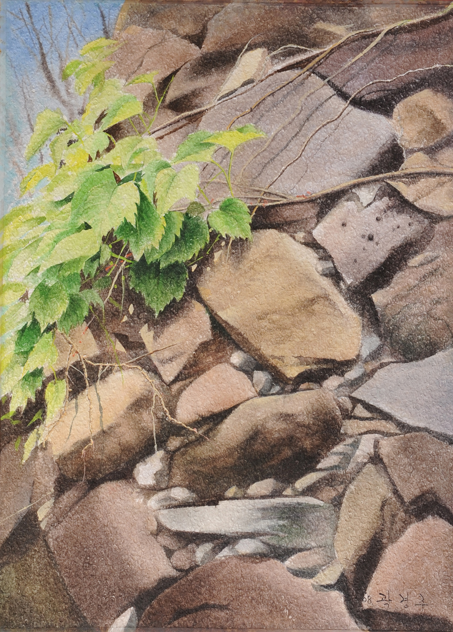 수용성 안료 특유의 물성을 잘이용하고,맑고도 담백한 서정성 있는 풍광이 좋다