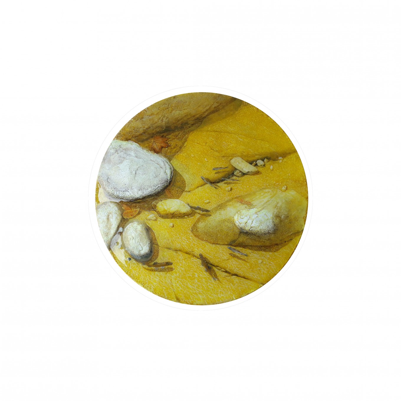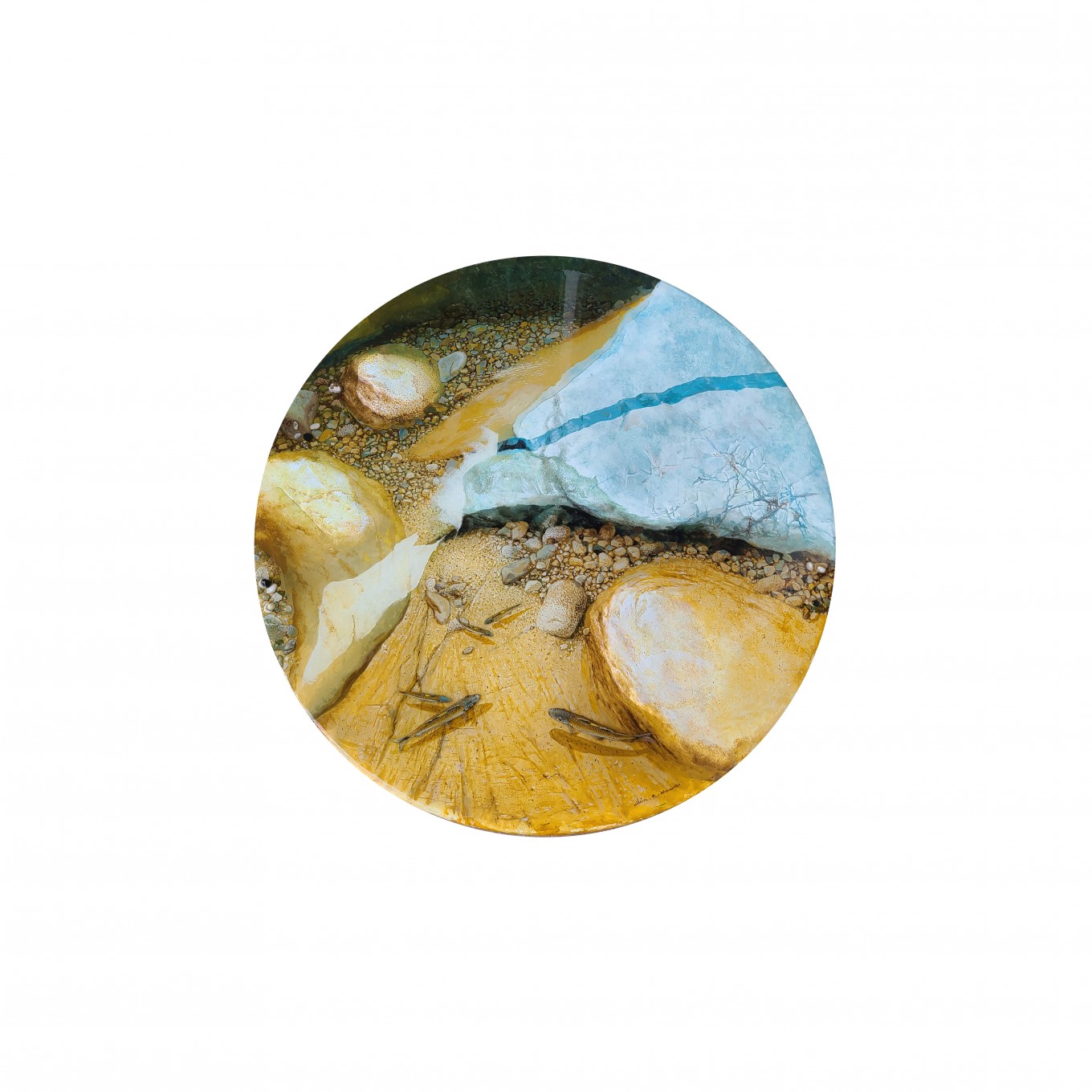 물은 흐르는 물길을 드러내고 있다. 그의 작업에는 물이 어디서 와서 어디로 가고 있는지를 모래와 돌이 알려준다.
