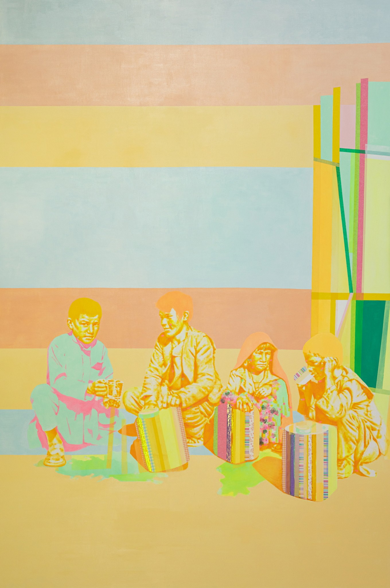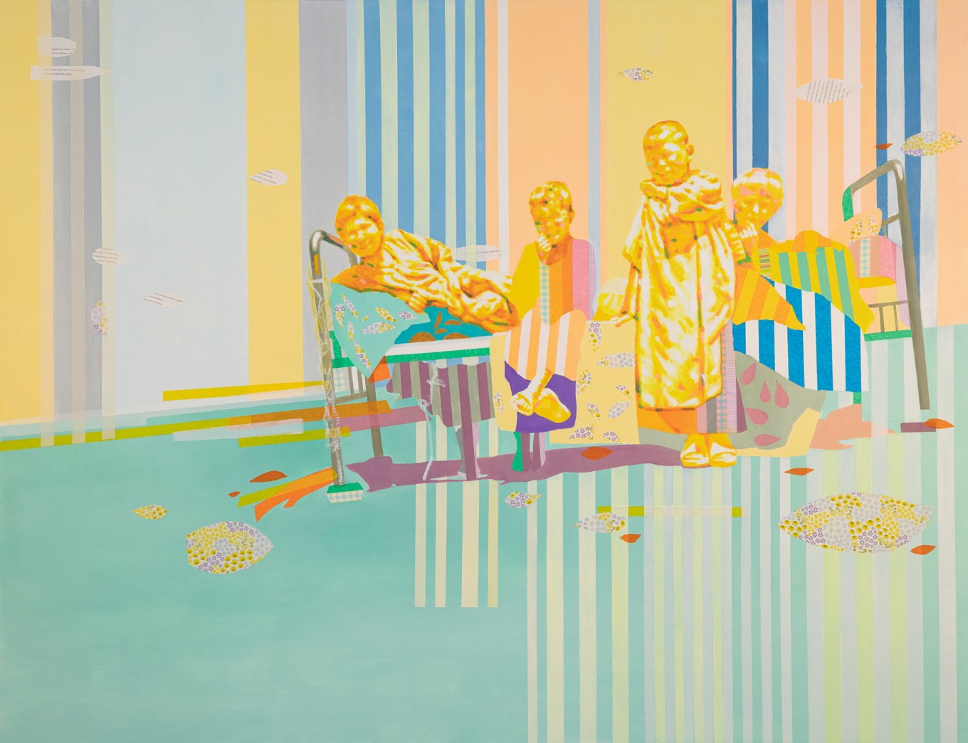 나의 작업의 특징인 중첩된 시간성, 미술의 역사의 단면, 이미지 차용이나 혼용 등은 17세기 북유럽의 바니타스(Vanitas) 화파의 철학에 뿌리를 두고 있다. ‘나의 기묘한 정물화(My Strange Still-Life Painting)’나 ‘하얀 방(White Void Room)’, 그리고 ‘흰색의 단면들(Shades of White)’ 등의 회화, 설치, 오브제, 소설 등은 ‘삶과 죽음’이라는 이분법적인 주제를 한 화면에 표현하며 생명의 순환을 이야기했던 바니타스 화가들처럼 이미지 또한 순환한다는 것을 이야기하고자 한 것이다. ‘색채의 기억(Memories of Colors)’이라는 새로운 연작은 보다 더 회화에 관한 것, 그 속의 영원한 현재에 관한 것이다. 모든 색을 포함하는 색채, 가장 가볍고도 숭고한 색채, 모든 시간의 흔적을 드러내는 색채 등의 표현을 위해 다양한 예술 작품이나 시선을 빼앗는 이미지들, 이를테면 공습으로 인해 육남매 모두가 목발에 의지한 채 살아야 하는 슬픈 아프가니스탄의 가족, 오히려 아련한 향수를 불러 일으키는 시카고 흑인 폭동을 담은 흑백 사진 등 쉽게 마주하는 여러 이미지들을 중첩시켰다. 또한 그림 속 주인공들의 정황을 숨기기 위한 장치로 추상표현주의나 미니멀리즘, 개념미술, 색채주의자, 옵아트 작가 등이 사용한 패턴이나 색채를 배경으로 차용하기도 하였다. 사선을 결코 사용하지 않았다는 몬드리안의 수직, 수평선의 구성은 아그네스 마틴(Agnes Martin)을 비롯한 여러 미니멀리즘(Minimalism), 추상표현주의 계열의 화가들이 격자(Grid) 문양에 부여하는 영적(Spiritual) 세계와의 연관성을 보여 주는데 그들의 철학과 미적 경험이 그림 속 인물들의 상황이 되어 주는 형식이다. 최근작인 ‘애프터 쉐리 레빈(After Sherrie Levine)’은 역사 속에서 주류를 차지했던 많은 남성 예술가들의 작품에 자신의 이름을 드리우는 차용 예술을 보여 주고 있는 쉐리 레빈과 여러 여성 예술가들의 작품을 패러디하여 여성 그리고 여성 예술가인 나 자신이 갖는 회화적 정체성에 대한 고민을 담은 작품이다. 이렇듯 ‘색채의 기억’ 연작은 살아 있는 유물이 된 여러 예술 작품들, 조각, 회화, 사진 등에 현재를 살아가는 ‘나’의 기억을 입히며 이미지의 혼용을 통해 나의 주관적 특징, 패턴 등을 발견하고자 했던 시도이자 캔버스 앞에서 느끼는 백색 공포를 극복할 수 있었던 방식이었다. 더 이상 새롭게 시도될 것이 없는 무수한 예술의 역사는 오히려 축복일 수도 있다.