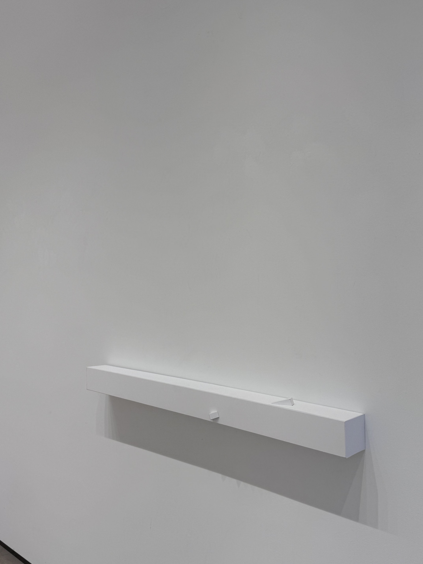 작가의 말에 따르면, <공간>은 ‘건축, 조형, 디자인 이 모든 것으로 보이고 만져지는 순수 공간’의 출현이자 공간 자체의 유희이다. 이것을 작가는 ‘아름다운 공간’이라고 부르고 있다. 건축의 공간 ‘속에서’ 새로운 형태로서의 틈을 만들어 미적인 공간을 제시하는 것인데, 미적인 공간이 새어 나오는 곳은 기능의 망(網)에서는 주목받지 못하는 장소, 모서리나 기둥, 벽면, 광장(건축의 바깥) 등이다. <공간>은 안과 밖으로 나뉘면서도 하나가 되고, 그 하나는 건축의 공간으로 환원되지 않는 ‘새로운 공간’이다. 기능을 뒷받침하는 장소가 ‘아름다운 공간’으로 변용(變容)되는 이 작용이 바로 신상욱 작가가 추구하는 작업인 것이다.