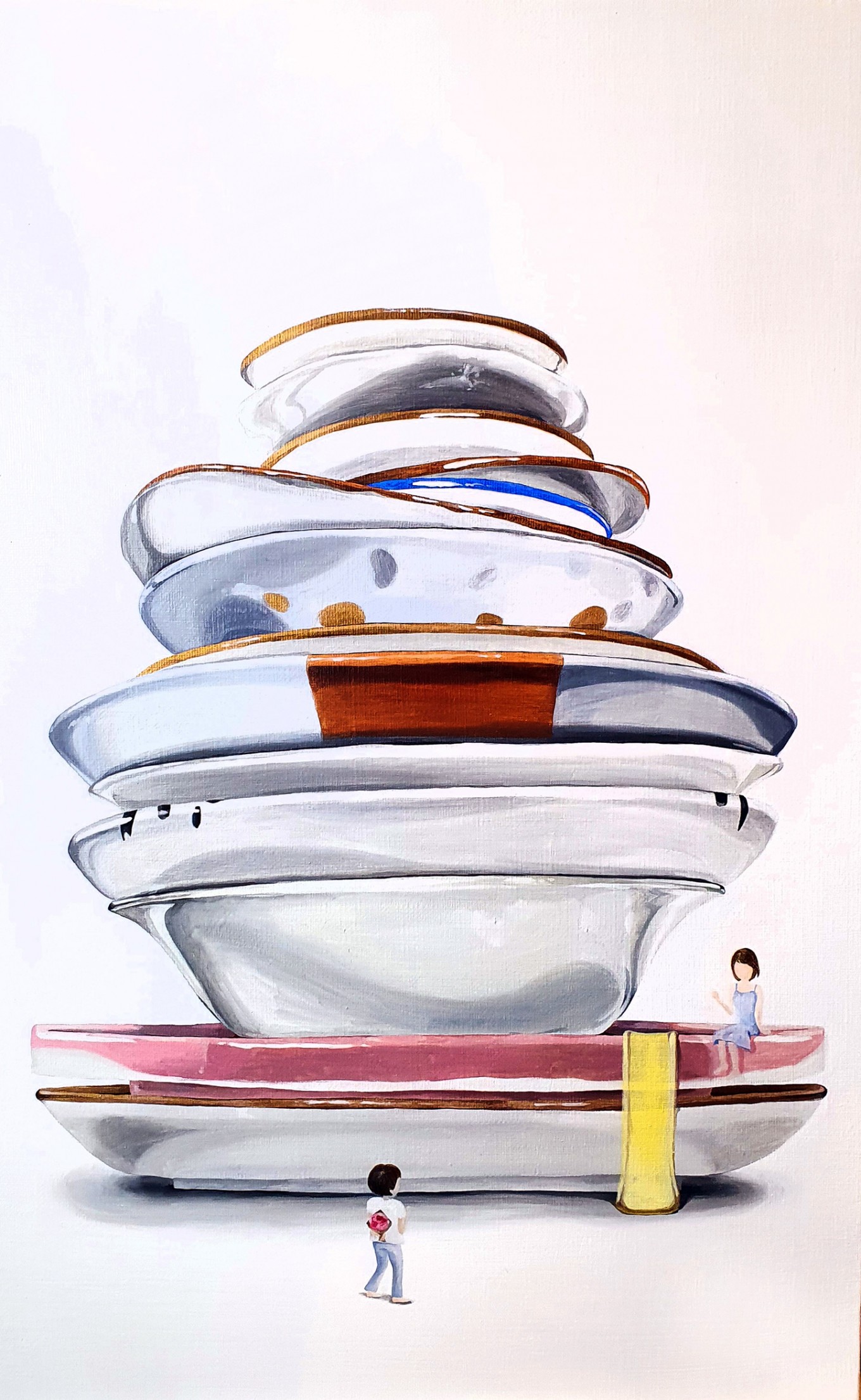 삶의 시공간에서 일어나는 일상의 경험과 기억, 그리고 감정을 담아내거나 덜어내며 끊임없이 관계를 주고받는다. 나는 이러한 우리의 모습이 무언가를 담아내고 비워내는 그릇의 특성과 닮았다는 점에 주목한다. 각양각색의 그릇은 하나의 소우주이자 사회를 반영하고, 그 안의 다채로운 소인(小人)들의 모습에서는 타인과의 관계와 질서 속 평화로운 공존을 느낄 수 있다. 각박한 사회에 대한 비판보다는, 상생과 관계성의 가치를 환기하는 작품으로 현대인들의 내면속 깊은 곳의 상처를 어루만지는 위로와 희망의 메시지를 전달한다.