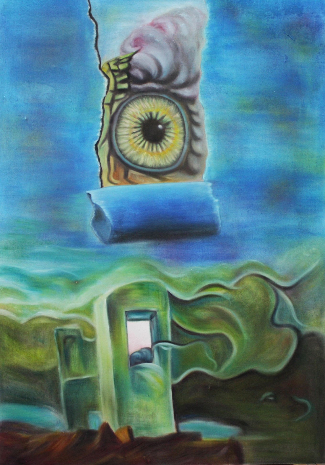 시선으로 보여 지는 하나의 공간 안에 마치 무엇인가 갈구하는 눈동자 그리고 여러 가지 기괴한 형태의 이미지들은 정체성에 대한 고민에 괴로운 듯