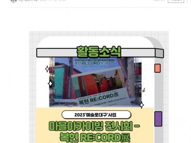 [블로그]복현1동 도시재생 뉴딜사업 · 대구문화예술진흥원 [예술로(路) 대구] 마을아카이빙 전시회 - 복현 RE:CORD展 후기 [출처] 복현1동 도시재생 뉴딜사업 · 대구문화예술진흥원 [예술로(路) 대