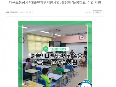 [대구교통공사공식블로그]대구교통공사 「예술인파견지원사업」 활용해 ‘늘봄학교’ 수업 지원