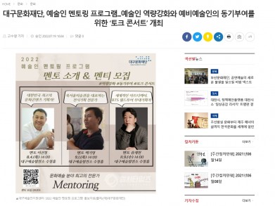 [보도자료]대구문화재단, 예술인 멘토링 프로그램...예술인 역량강화와 예비예술인의 동기부여를 위한 ‘토크 콘서트’ 개최