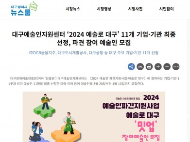 [보도자료]대구예술인지원센터 ‘2024 예술로 대구’ 11개 기업·기관 최종 선정, 파견 참여 예술인 모집