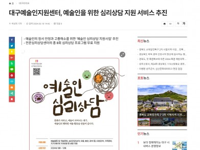 [보도자료]대구예술인지원센터, '2024 예술인 심리상담 지원사업' 진행