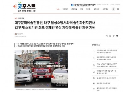 [보도자료]대구문화예술진흥원, 대구 달성소방서와‘예술인파견지원사업’연계 소방기관 최초 캠페인 영상 제작에 예술인 파견 지원