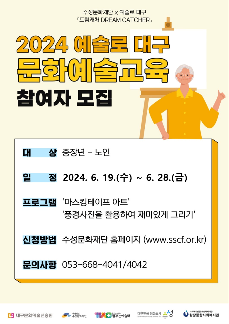 [종료] [2024 예술인파견지원사업-예술로 대구] (재)수성문화재단 문화관광사업단 파견예술인 시니어 대상 무료 운영 프로그램 신청 안내