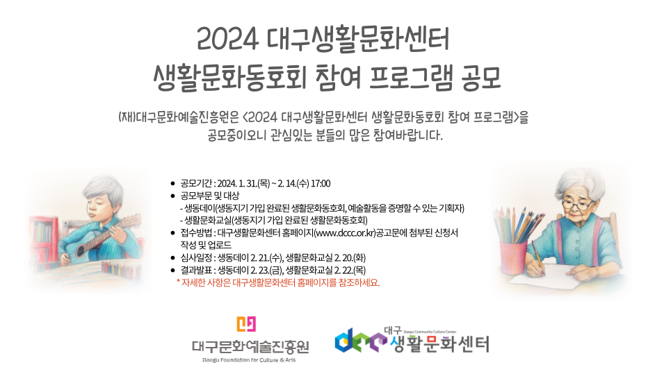 *자세한 사항은 대구생활문화센터 홈페이지(dccc.or.kr)을 참조하세요.