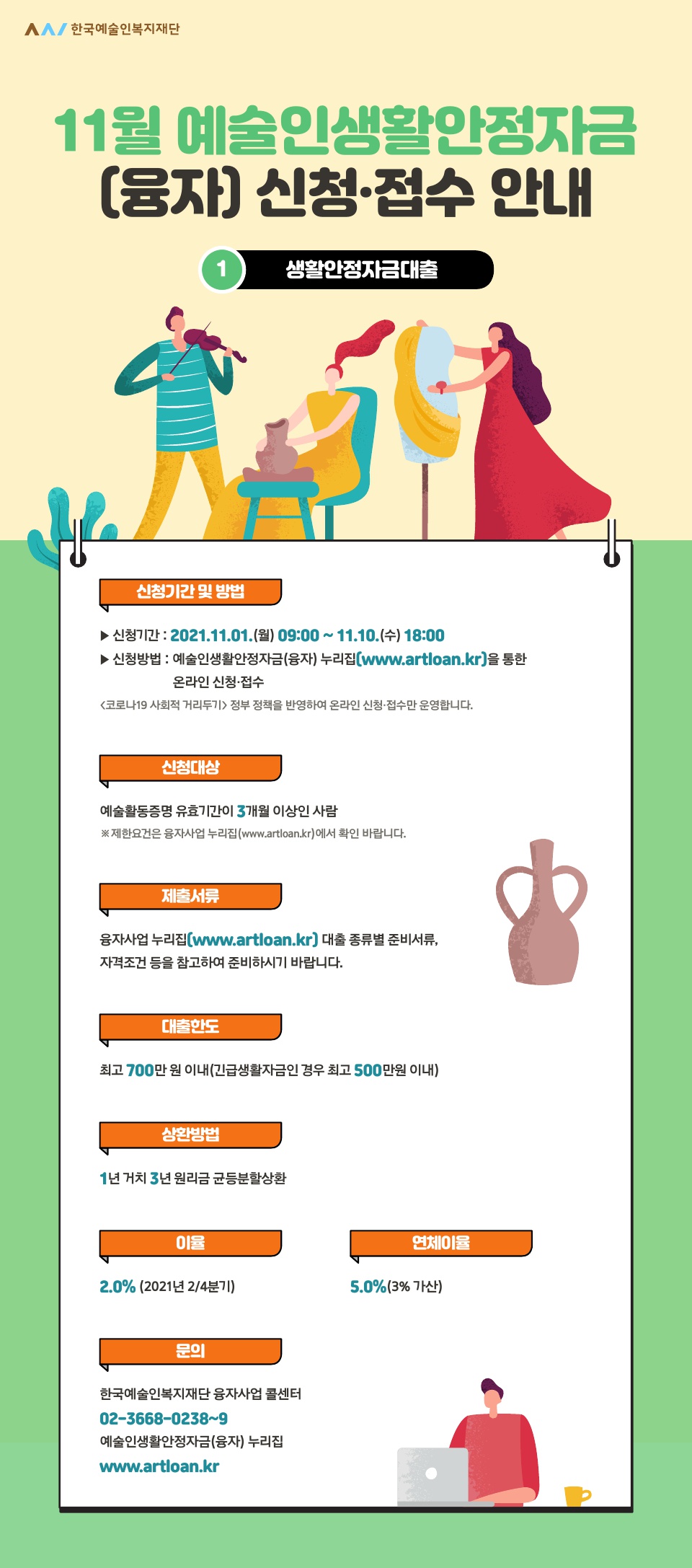 [종료] [한국예술인복지재단] 11월 예술인생활안정자금(융자) 신청ㆍ접수 안내