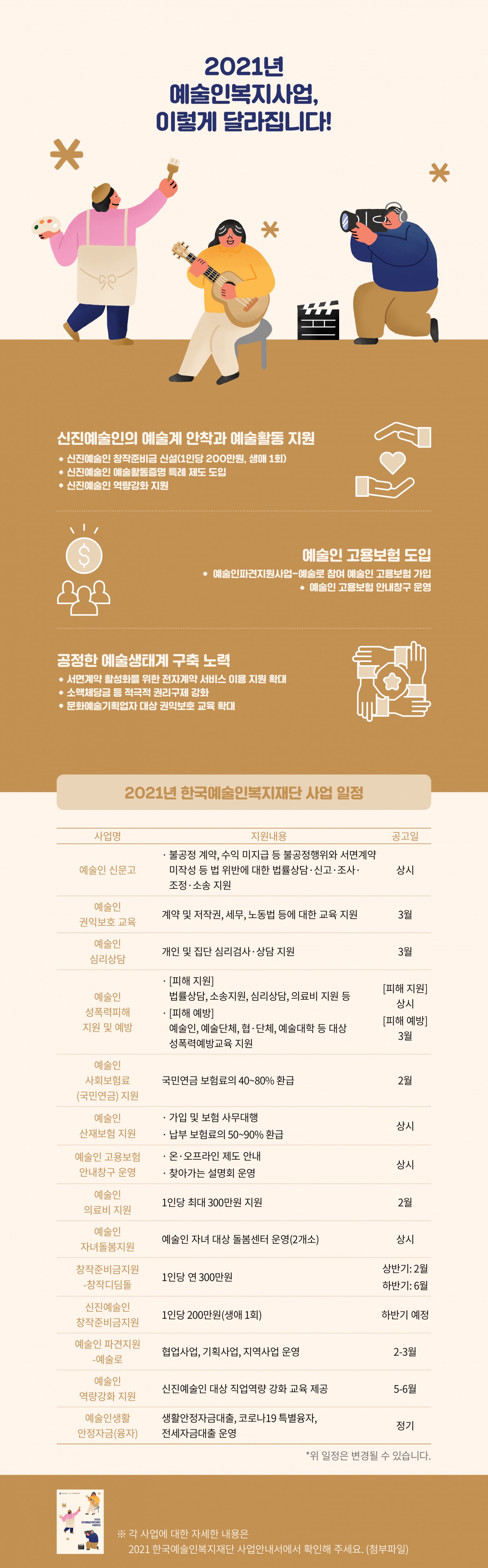 - 붙임1 [최종] 2021 한국예술인복지재단 사업안내서.pdf (2.1M) 101회 다운로드 | DATE : 2021-02-03 13:52:42