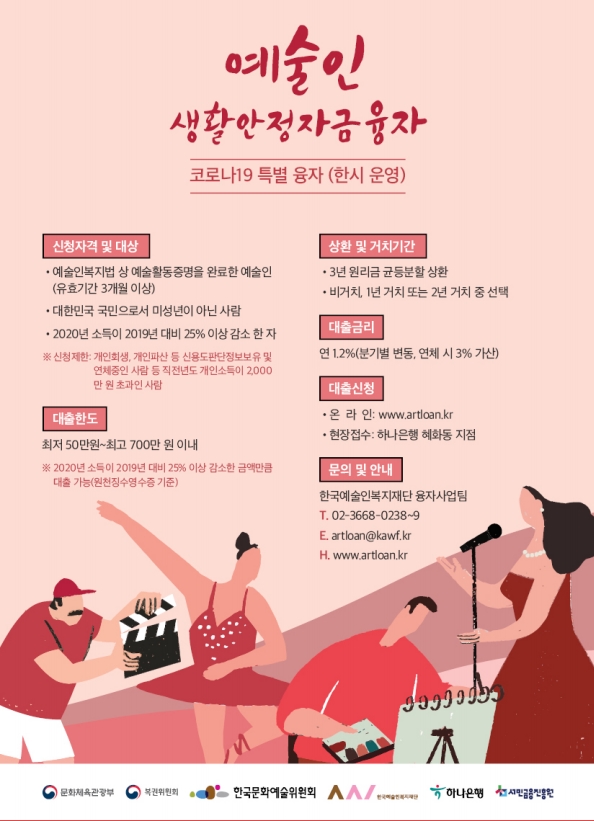 [종료] 예술인 생활안정자금융자 _ 코로나19 특별 융자(한시운영)