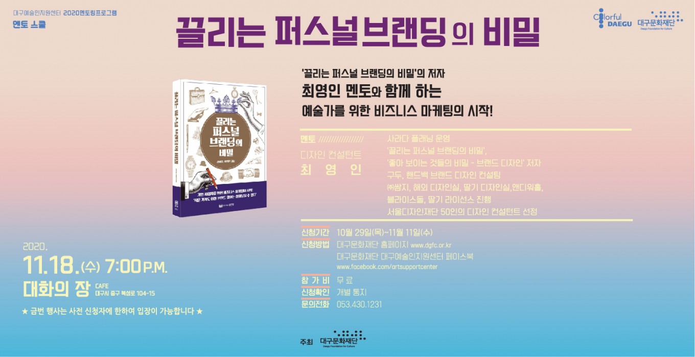 5 | 11. 18.(수) | 끌리는 퍼스널 브랜딩의 비밀 | 최영인 |