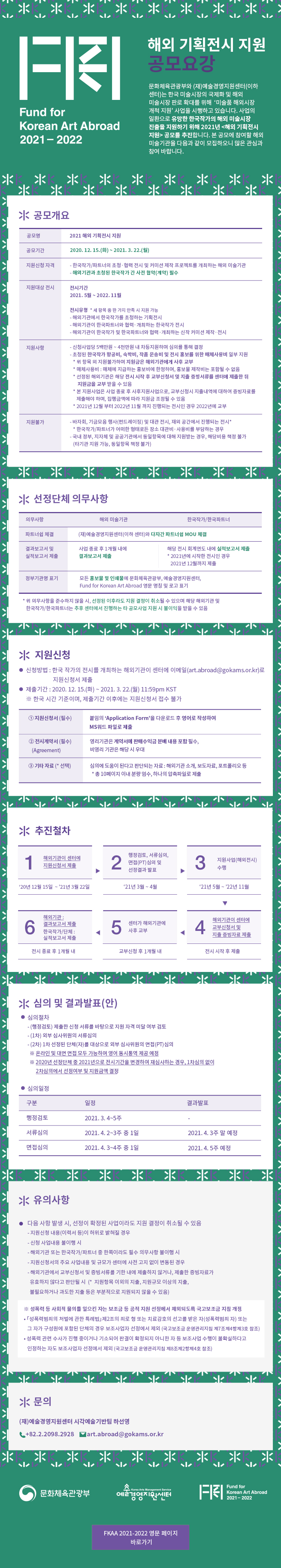 [종료] [예술경영지원센터]2021 미술품 해외시장 개척 지원-해외 기획전시 지원(FKAA) 공모 안내