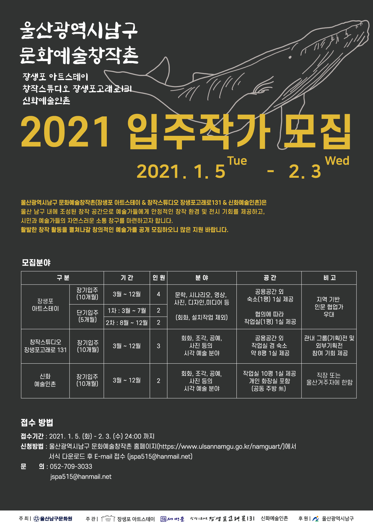 [종료] [울산광역시남구 문화예술창작촌] [회원등록공고] 2021 울산광역시남구 문화예술창작촌 레지던시 입주작가 모집