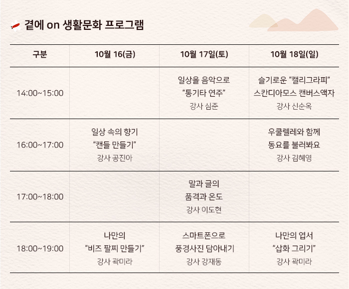 온라인 체험강좌 참가신청 10월 15일 16:00까지 추가모집 연장
